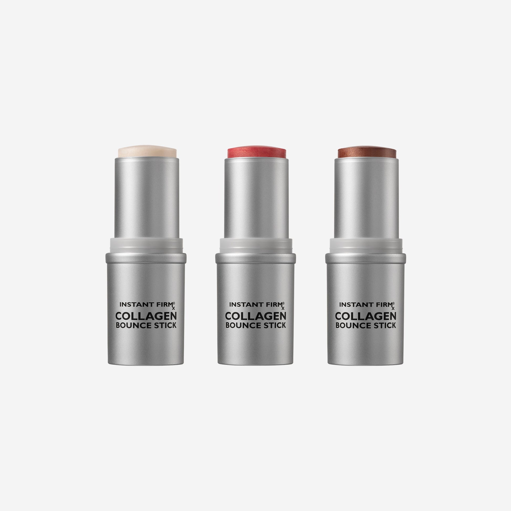 Bounce and glow in every shade with this trio of Instant FIRMx® Collagen Bounce Sticks. Infused with a 10% Collagen Complex, these advanced multi-use sticks are clinically proven to improve the look of skin elasticity instantly and over time,* and deliver long-term firming and plumping benefits with continued use.